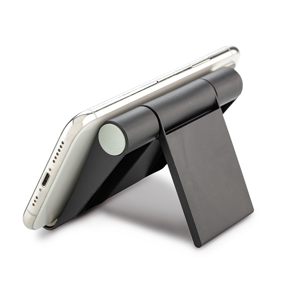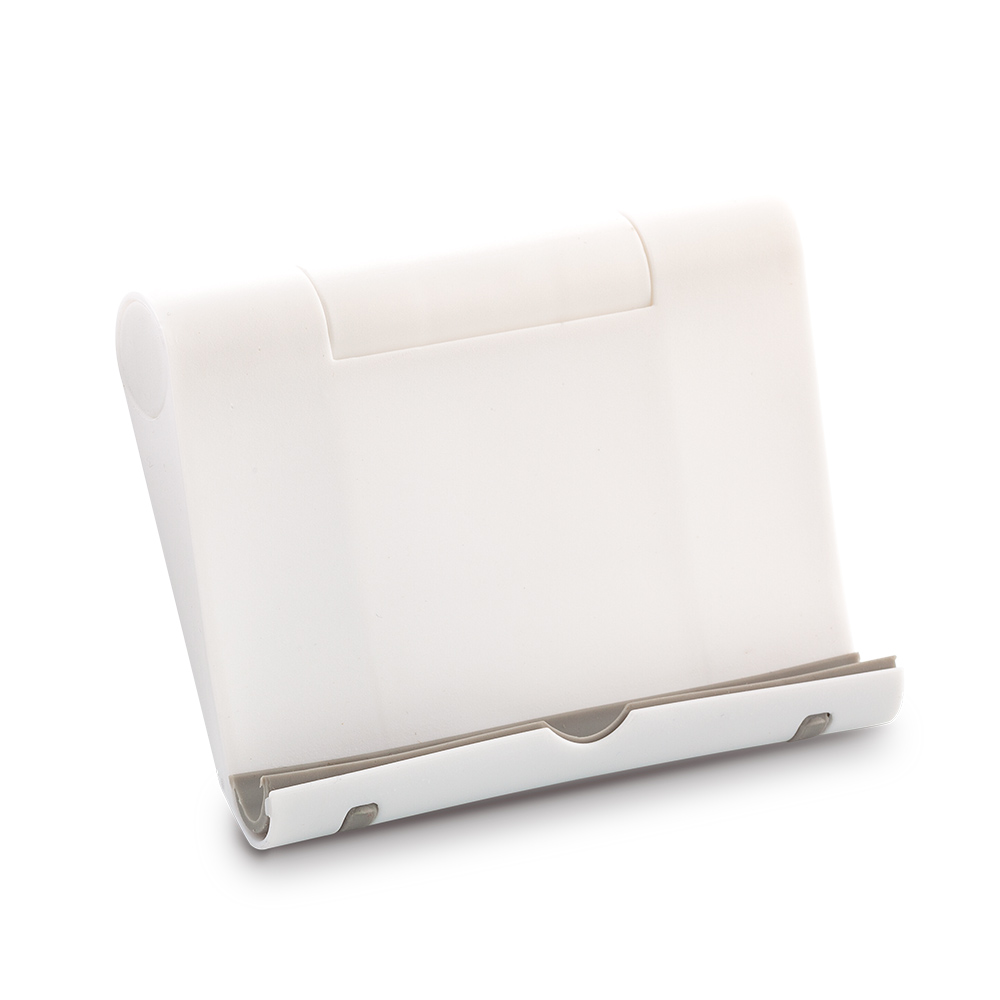 Soporte plástico para móviles y tablets. Altura ajustable.Empaque caja individual Medidas Cerrado: 9.7 cm x 7.5 cmMarca: 5.5 cm / Tampografía